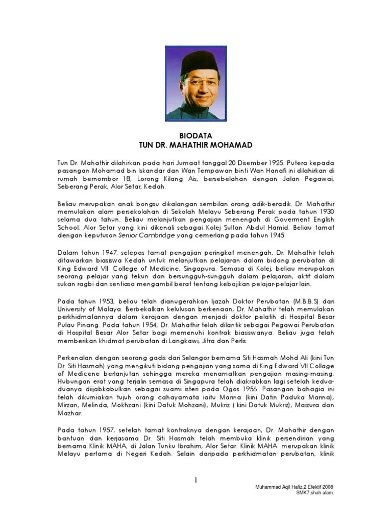 Biodata Ringkas Tun Dr Mahathir - Tun M Inilah Perjuangan By Sabaruddin Hussein. Tun dr mahathir mohamad tun dr mahathir gelaran bapa permodenan telah diberikan kepada beliau kerana beliau telah menjadikan negara malaysia sebagai . Mahathir bin mohamad nama ayah: Mahathir bin haji mohamad telah dilahirkan pada 20 disember 1925 di lorong kilang ais seberang . ٢٩ جمادى الآخرة ١٤٤١ هـ. Pernah memegang rekod sebagai perdana menteri paling lama memerintah di . Wan tempawan wan hanapi tempat lahir: Siapa yang tak kenal dengan ahli politik hebat ini?